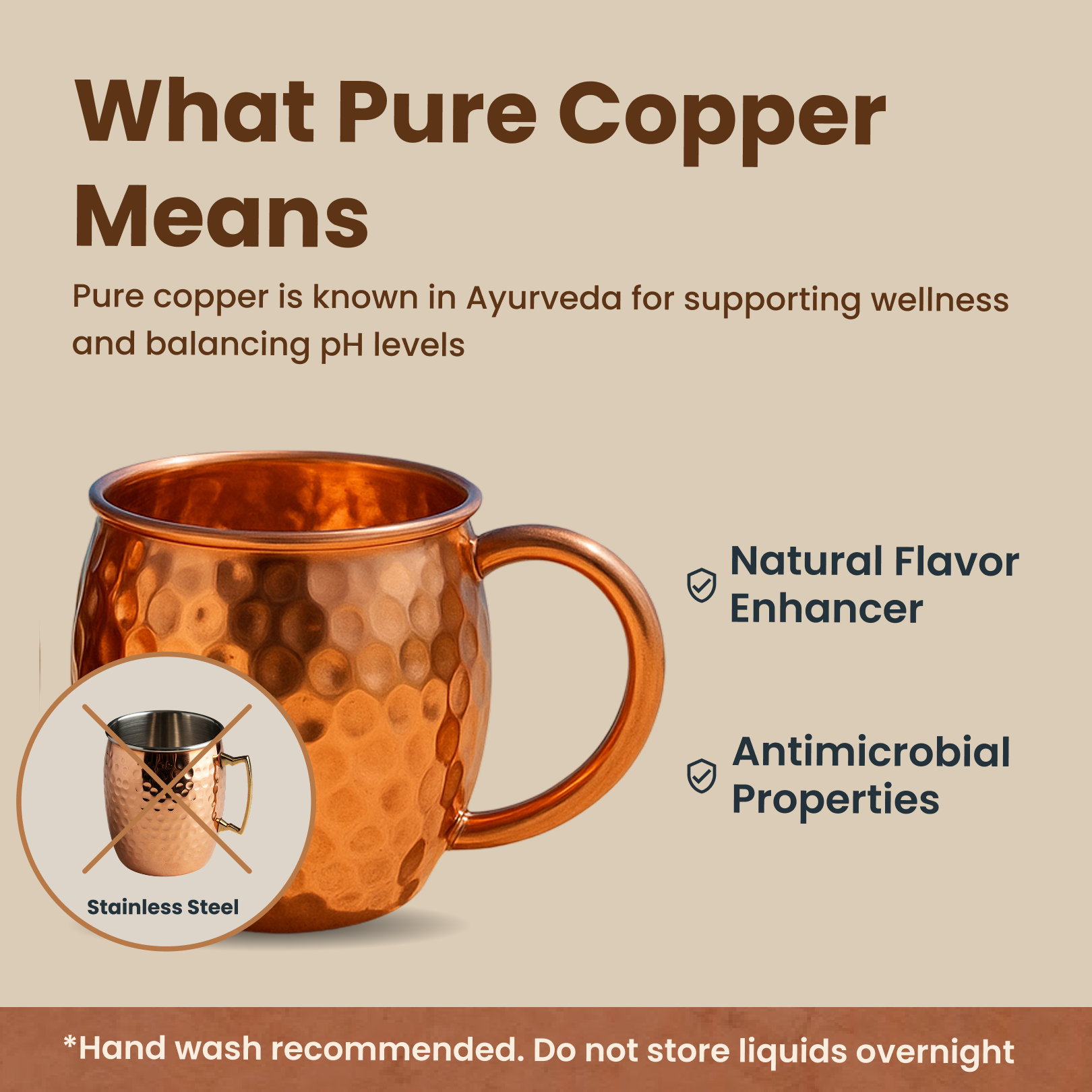 Whether you're mixing the perfect Moscow Mule or enjoying an iced mint lemonade, these 100% pure copper mugs bring a touch of timeless tradition to every sip. Hand-hammered by skilled artisans, they combine beauty with authenticity, keeping your drinks crisp and full of character.