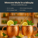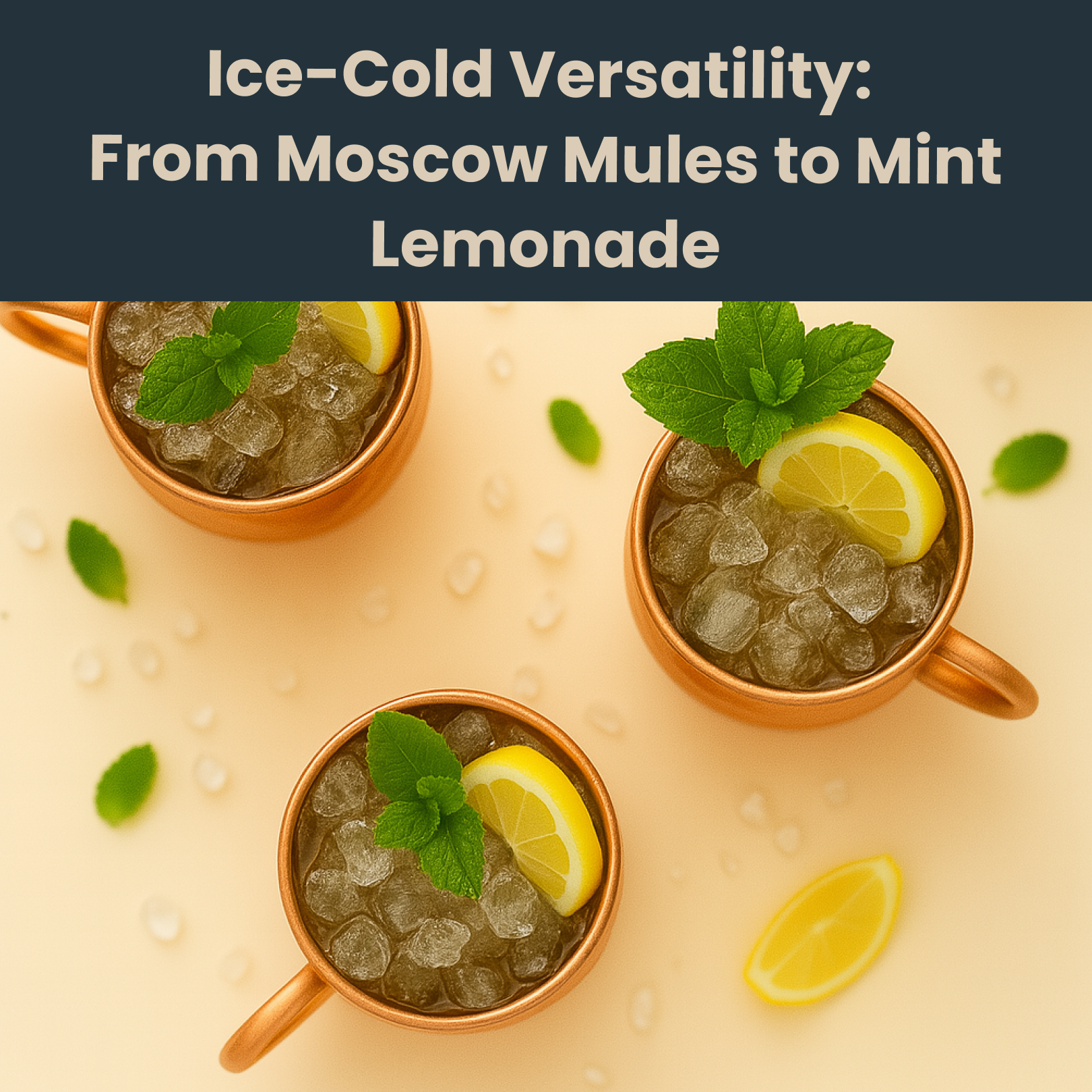 Copper mugs are perfect for cocktails like Moscow Mules, whiskey smashes, mojitos, and chilled cocktails/mocktails.