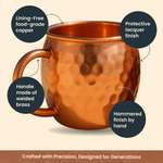 The hammered finish adds a touch of vintage charm, while the solid copper build enhances flavor and maintains chill. Ideal for your bar cart, a special gift, or your next celebration.
