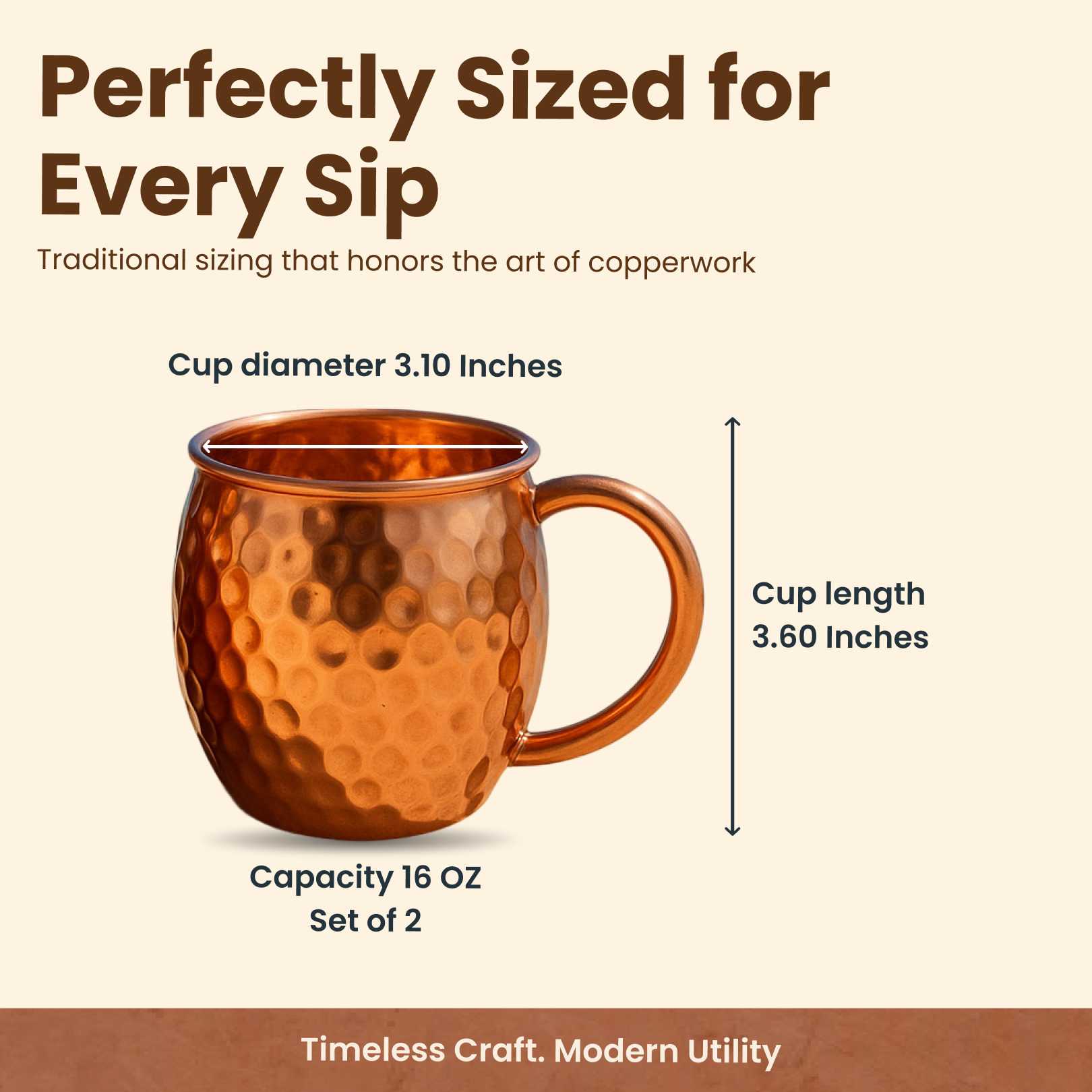 Pure Copper Handcrafted Moscow Mule Mugs - 16 Oz (Pack of 2)
