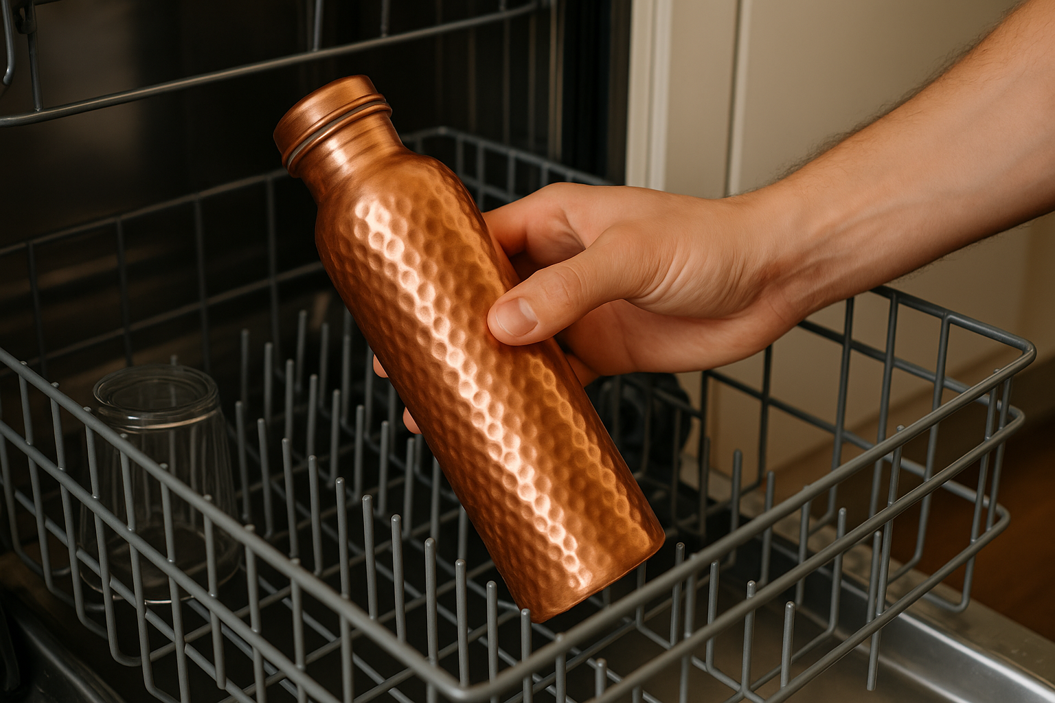 Our copper water bottles are dishwasher safe. However, for a deeper clean, you can use lemon and salt or a vinegar solution.