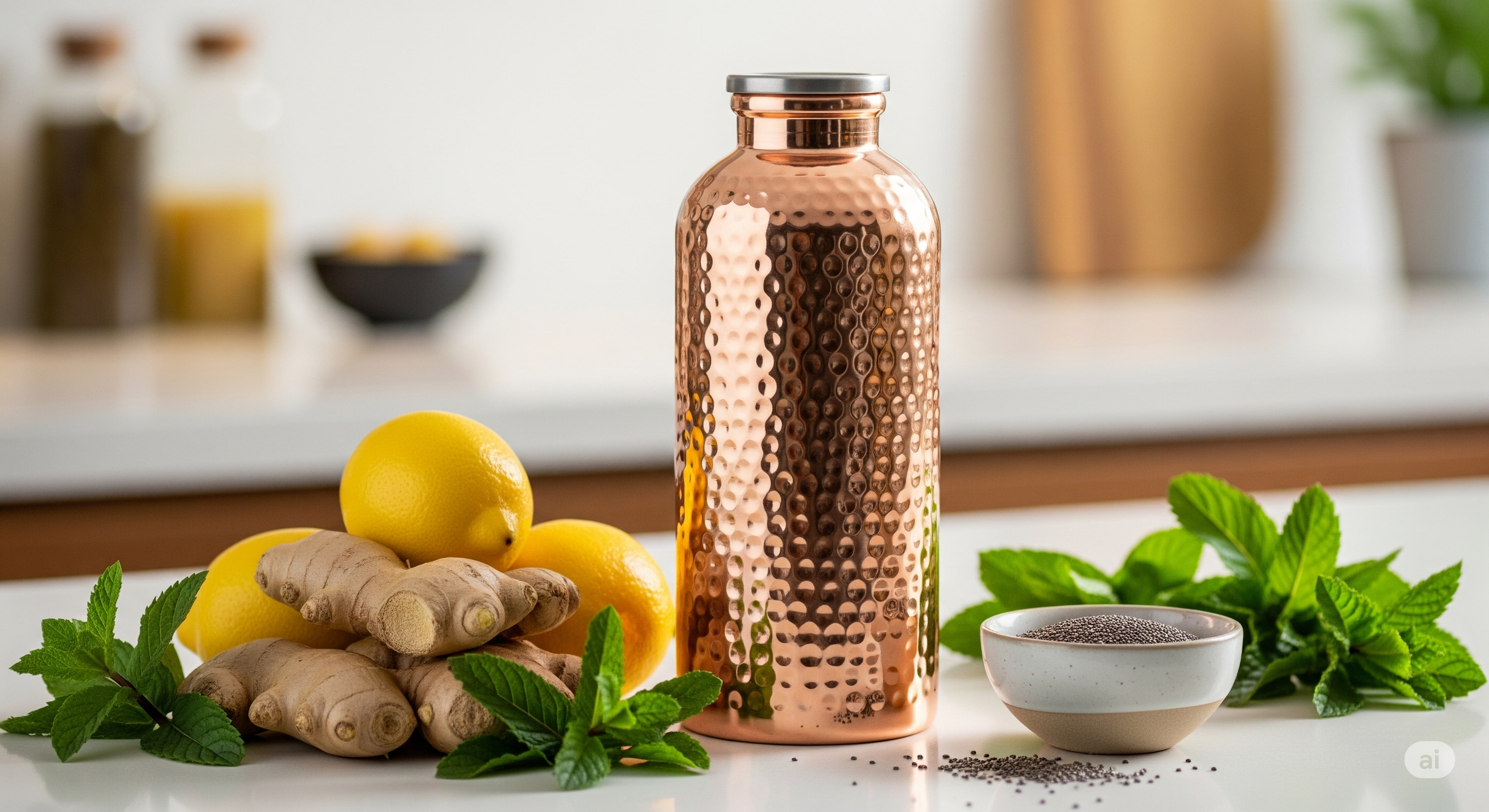 Copper naturally purifies water, kills bacteria, and supports digestion, immunity, and metabolism. Ayurveda recommends storing water in a copper bottle overnight for maximum benefits.