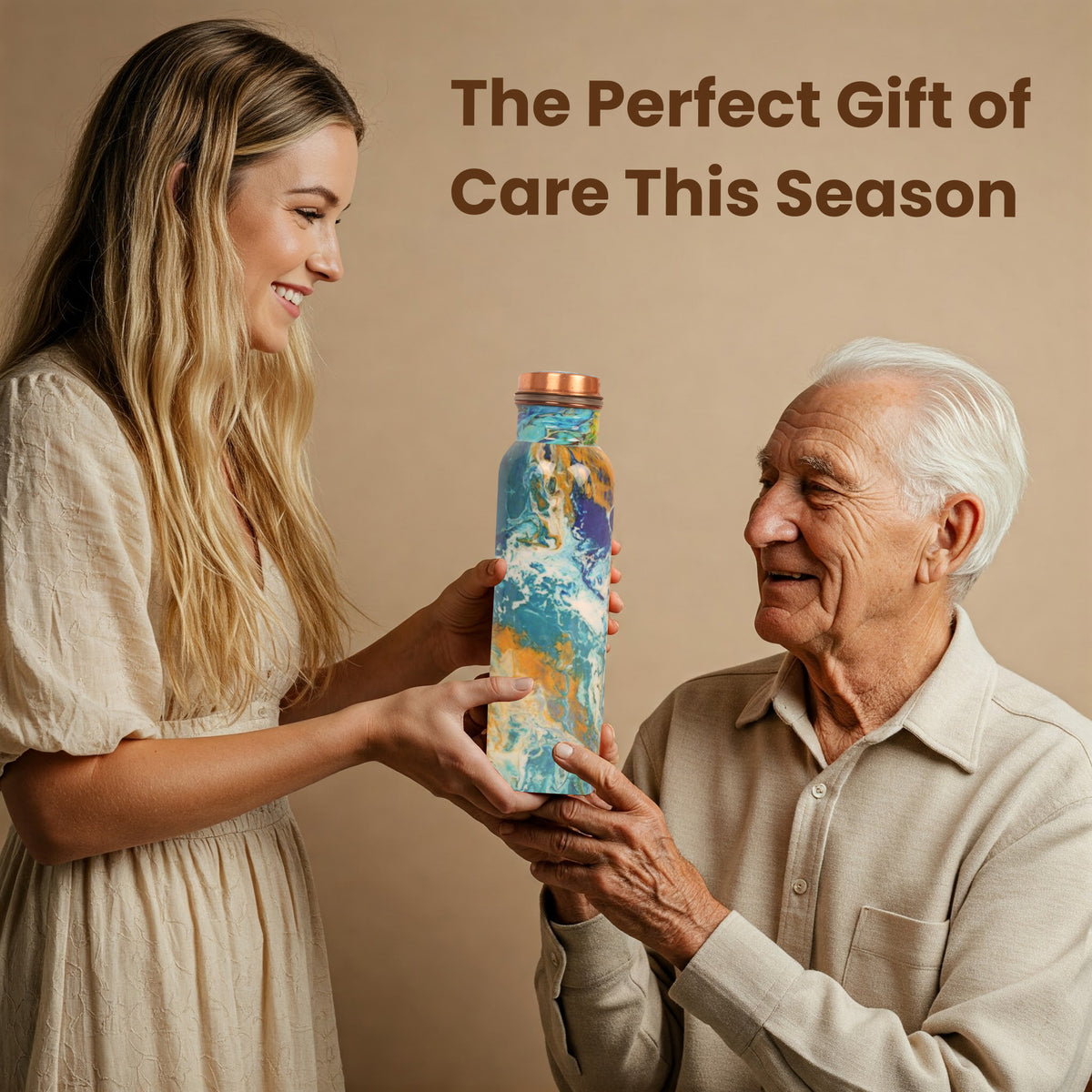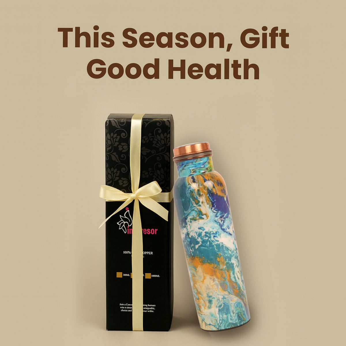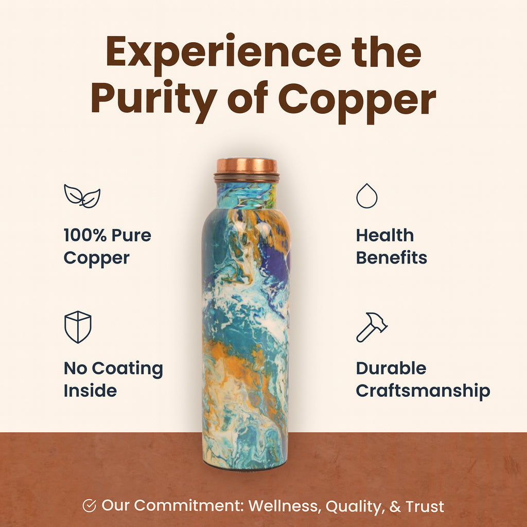 Discover a deeper way to hydrate. Rooted in ancient Ayurvedic wisdom, our pure copper bottle enhances every sip; supporting digestion, immunity, and overall vitality. Print Copper bottle finish isn't just beautiful; it's a reflection of time-honored craftsmanship made for your everyday rhythm.