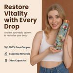 Discover a deeper way to hydrate. Rooted in ancient Ayurvedic wisdom, our pure copper bottle enhances every sip; supporting digestion, immunity, and overall vitality. The natural hammered finish isn't just beautiful; it's a reflection of time-honored craftsmanship made for your everyday rhythm.