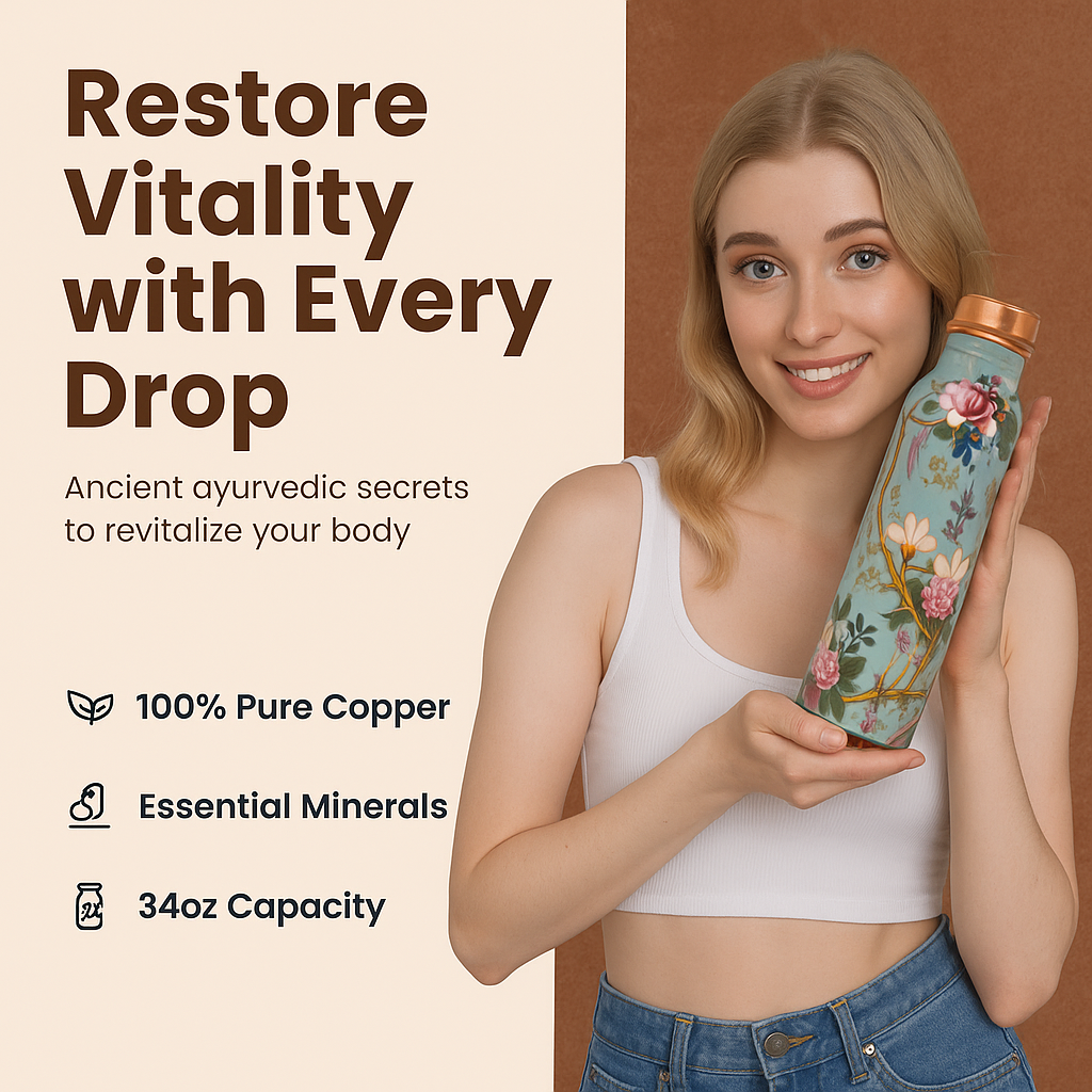 Copper naturally purifies water, kills bacteria, and supports digestion, immunity, and metabolism. Ayurveda recommends storing water in a copper bottle overnight for maximum benefits.